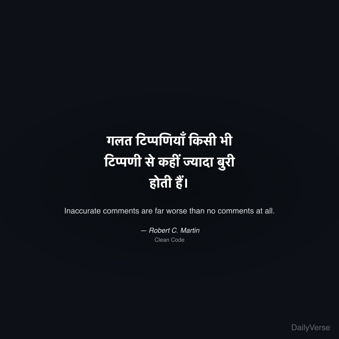 "गलत टिप्पणियाँ किसी भी टिप्पणी से कहीं ज्यादा बुरी होती हैं।" — Robert C. Martin