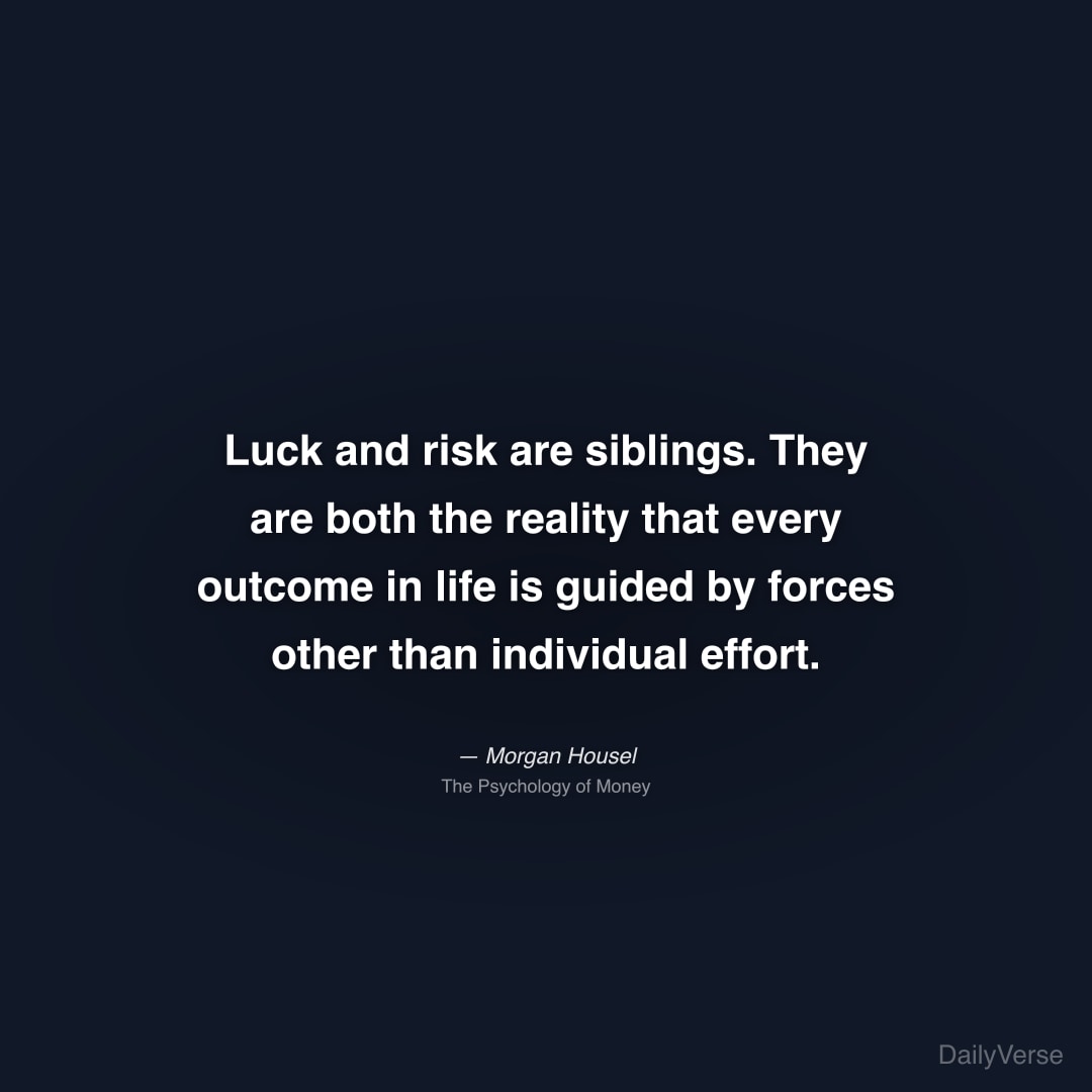 "Luck and risk are siblings. They are both the reality that every outcome in life is guided by forces other than individual effort." — Morgan Housel