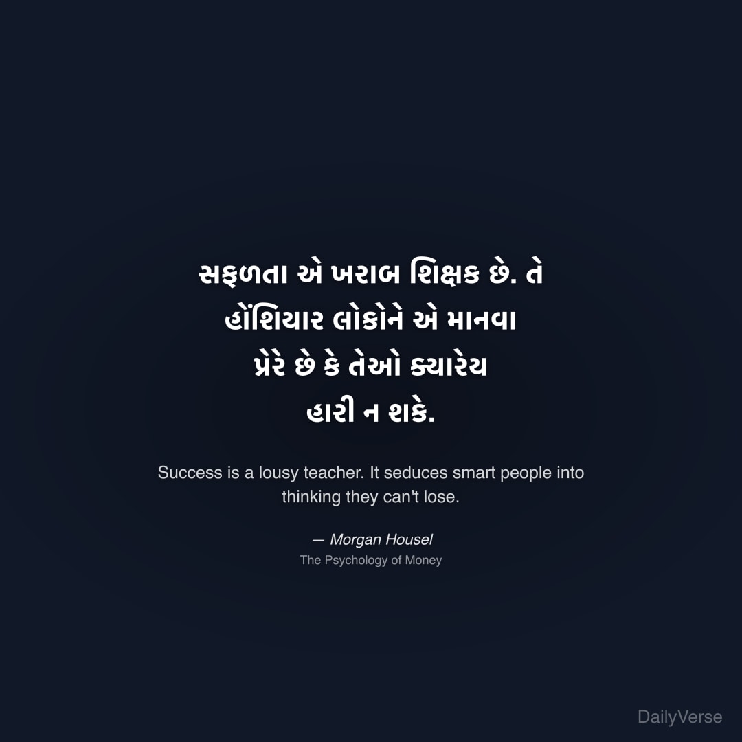 "સફળતા એ ખરાબ શિક્ષક છે. તે હોંશિયાર લોકોને એ માનવા પ્રેરે છે કે તેઓ ક્યારેય હારી ન શકે." — Morgan Housel