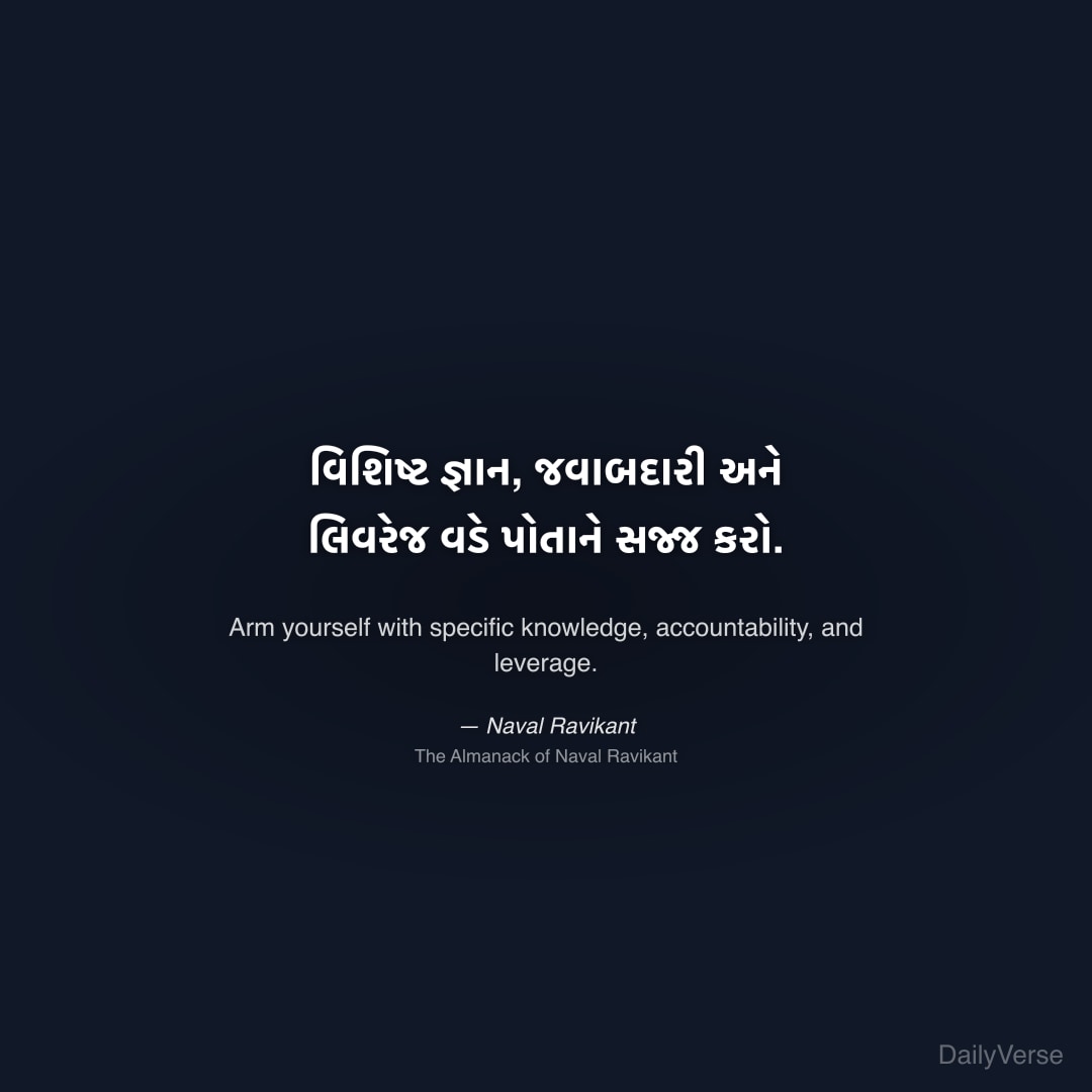 "વિશિષ્ટ જ્ઞાન, જવાબદારી અને લિવરેજ વડે પોતાને સજ્જ કરો." — Naval Ravikant
