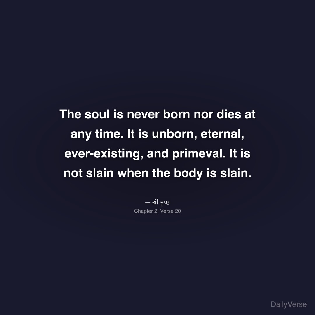 "The soul is never born nor dies at any time. It is unborn, eternal, ever-existing, and primeval. It is not slain when the body is slain." — શ્રી કૃષ્ણ