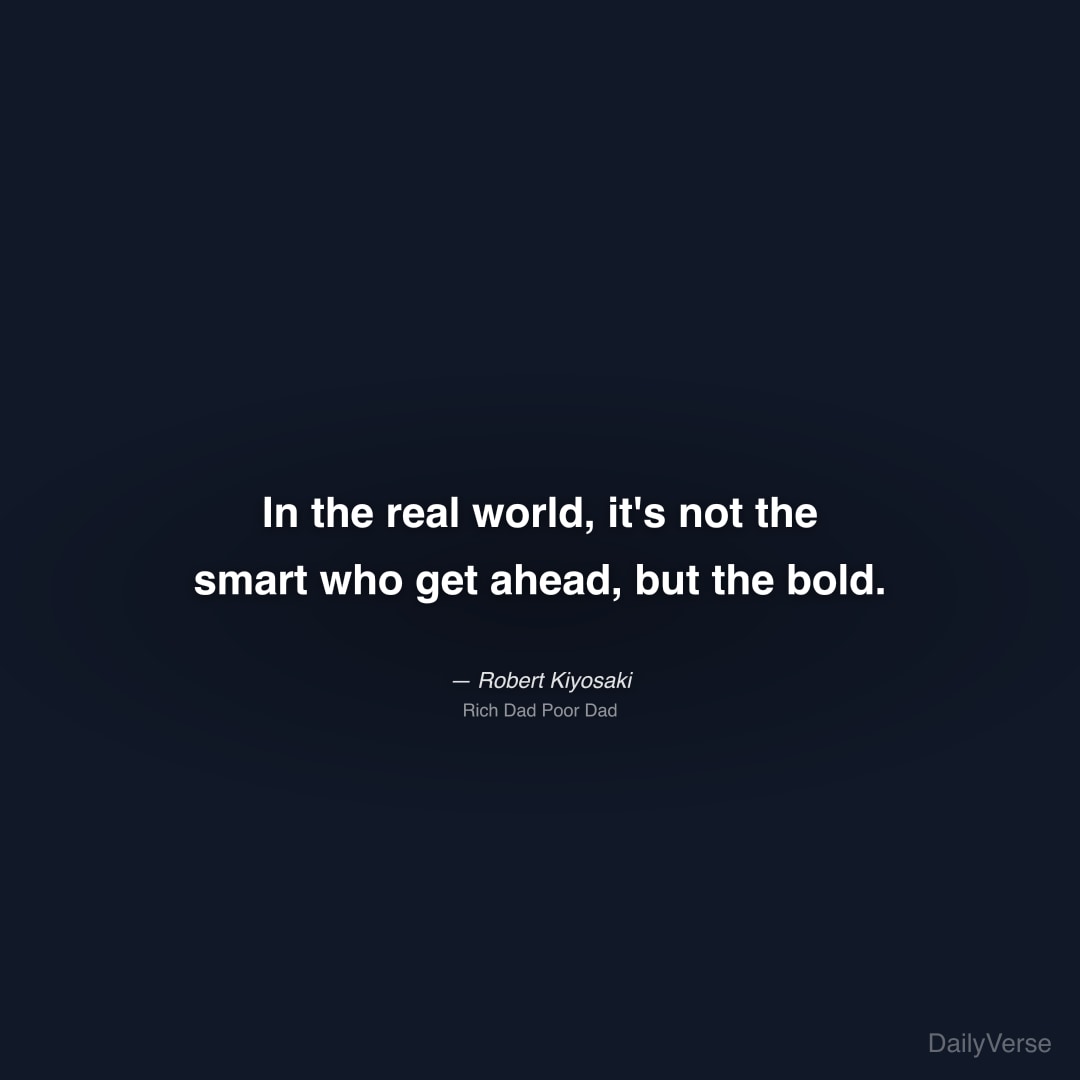 "In the real world, it's not the smart who get ahead, but the bold." — Robert Kiyosaki