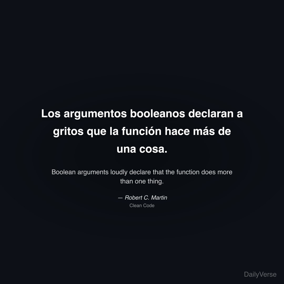 "Los argumentos booleanos declaran a gritos que la función hace más de una cosa." — Robert C. Martin