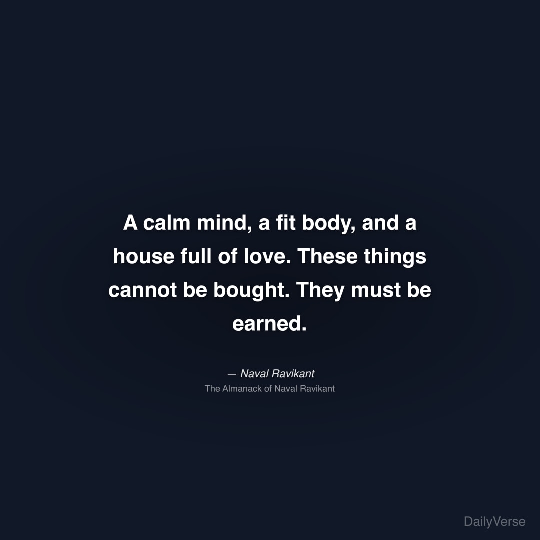 "A calm mind, a fit body, and a house full of love. These things cannot be bought. They must be earned." — Naval Ravikant