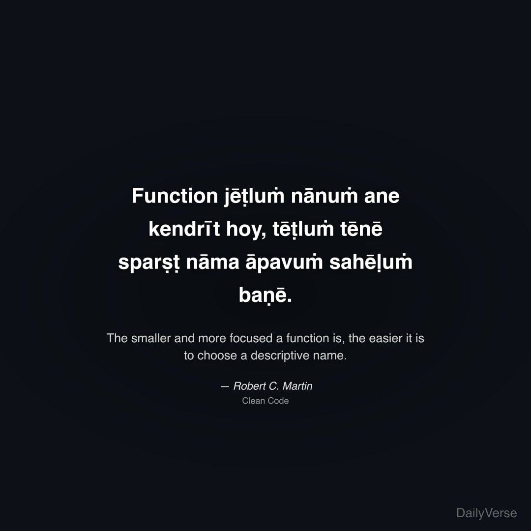 "Function jēṭluṁ nānuṁ ane kendrīt hoy, tēṭluṁ tēnē sparṣṭ nāma āpavuṁ sahēḷuṁ baṇē." — Robert C. Martin