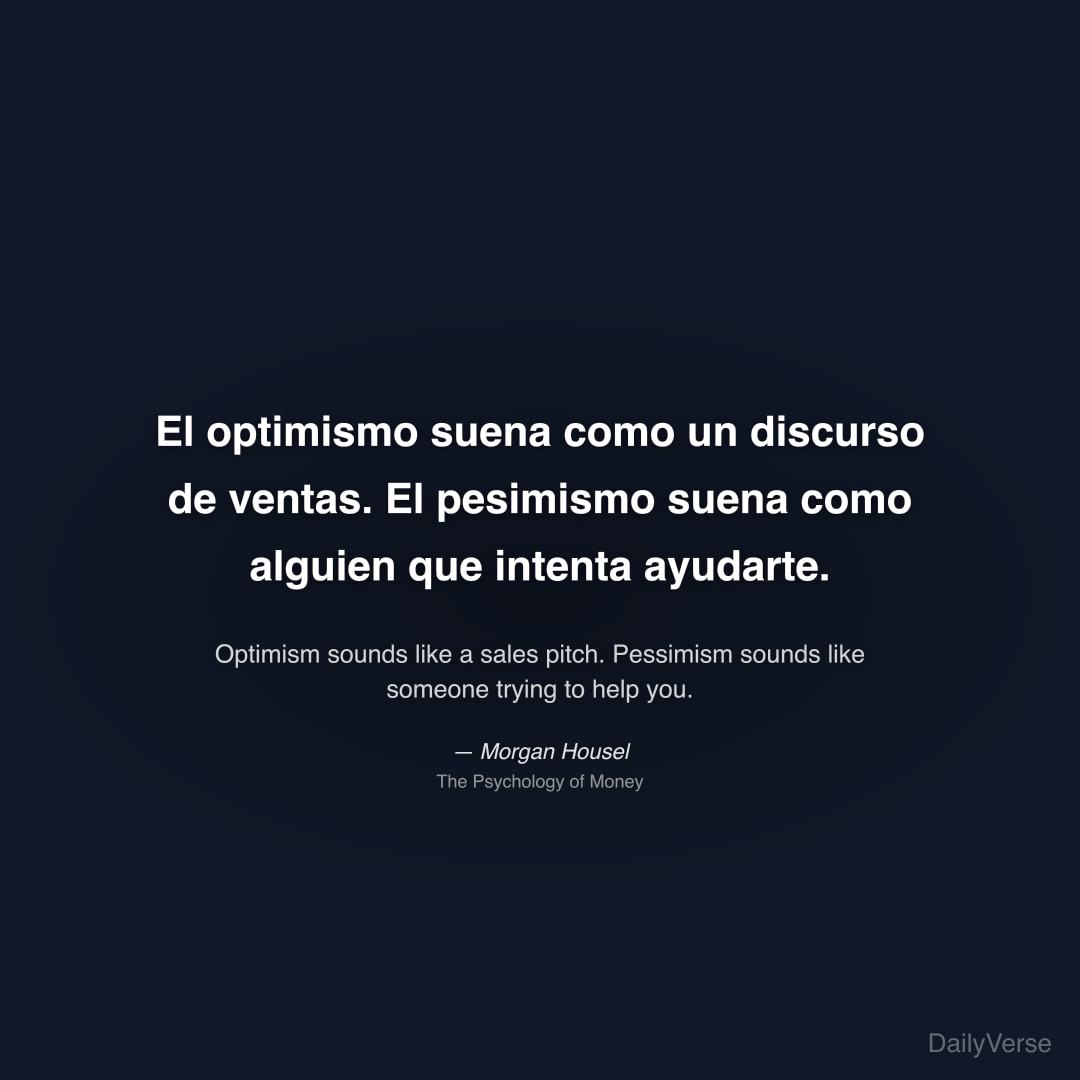 "El optimismo suena como un discurso de ventas. El pesimismo suena como alguien que intenta ayudarte." — Morgan Housel