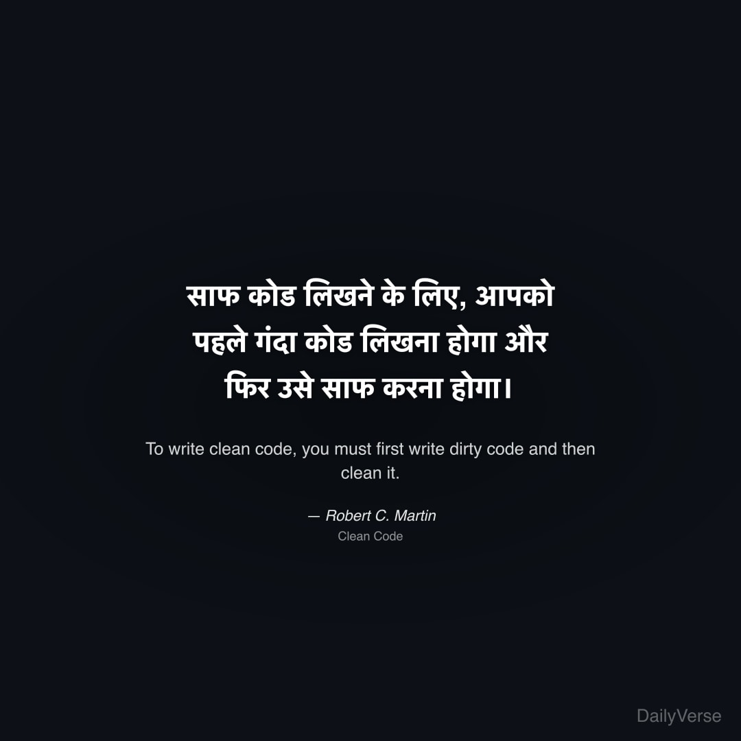 "साफ कोड लिखने के लिए, आपको पहले गंदा कोड लिखना होगा और फिर उसे साफ करना होगा।" — Robert C. Martin