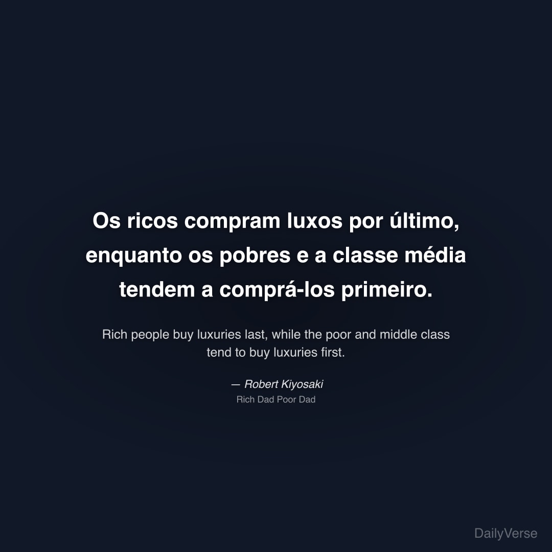 "Os ricos compram luxos por último, enquanto os pobres e a classe média tendem a comprá-los primeiro." — Robert Kiyosaki