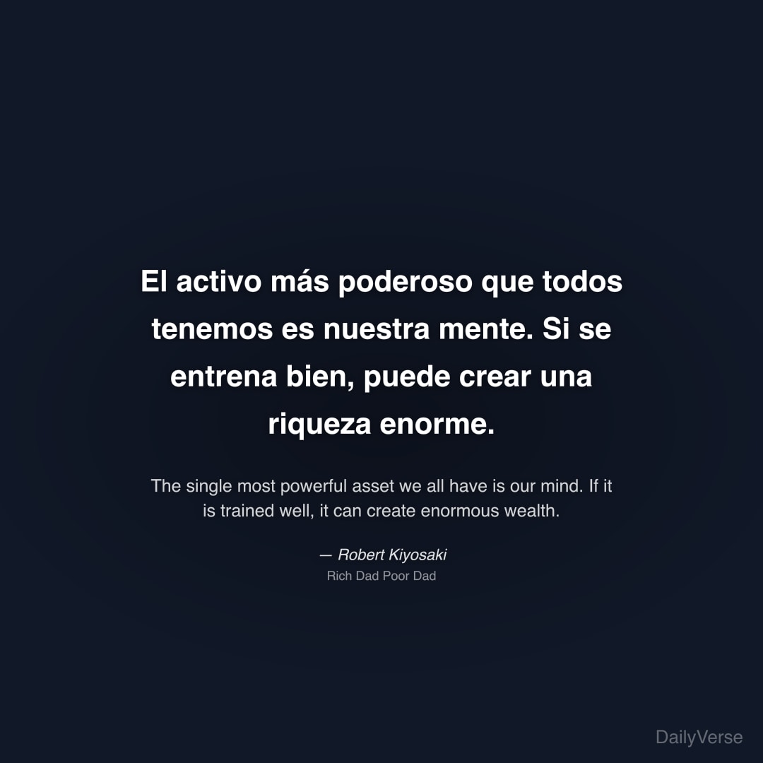 "El activo más poderoso que todos tenemos es nuestra mente. Si se entrena bien, puede crear una riqueza enorme." — Robert Kiyosaki