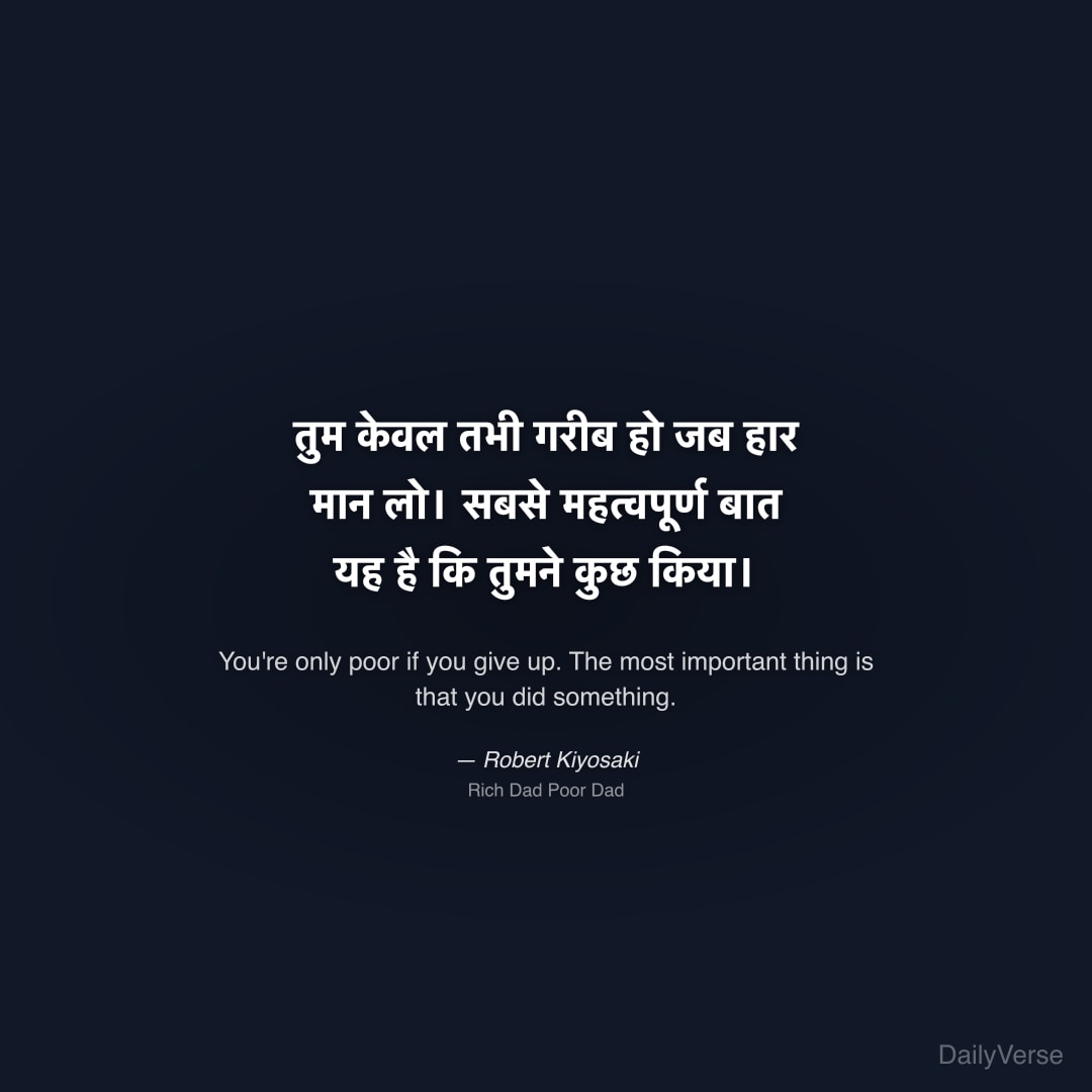"तुम केवल तभी गरीब हो जब हार मान लो। सबसे महत्वपूर्ण बात यह है कि तुमने कुछ किया।" — Robert Kiyosaki