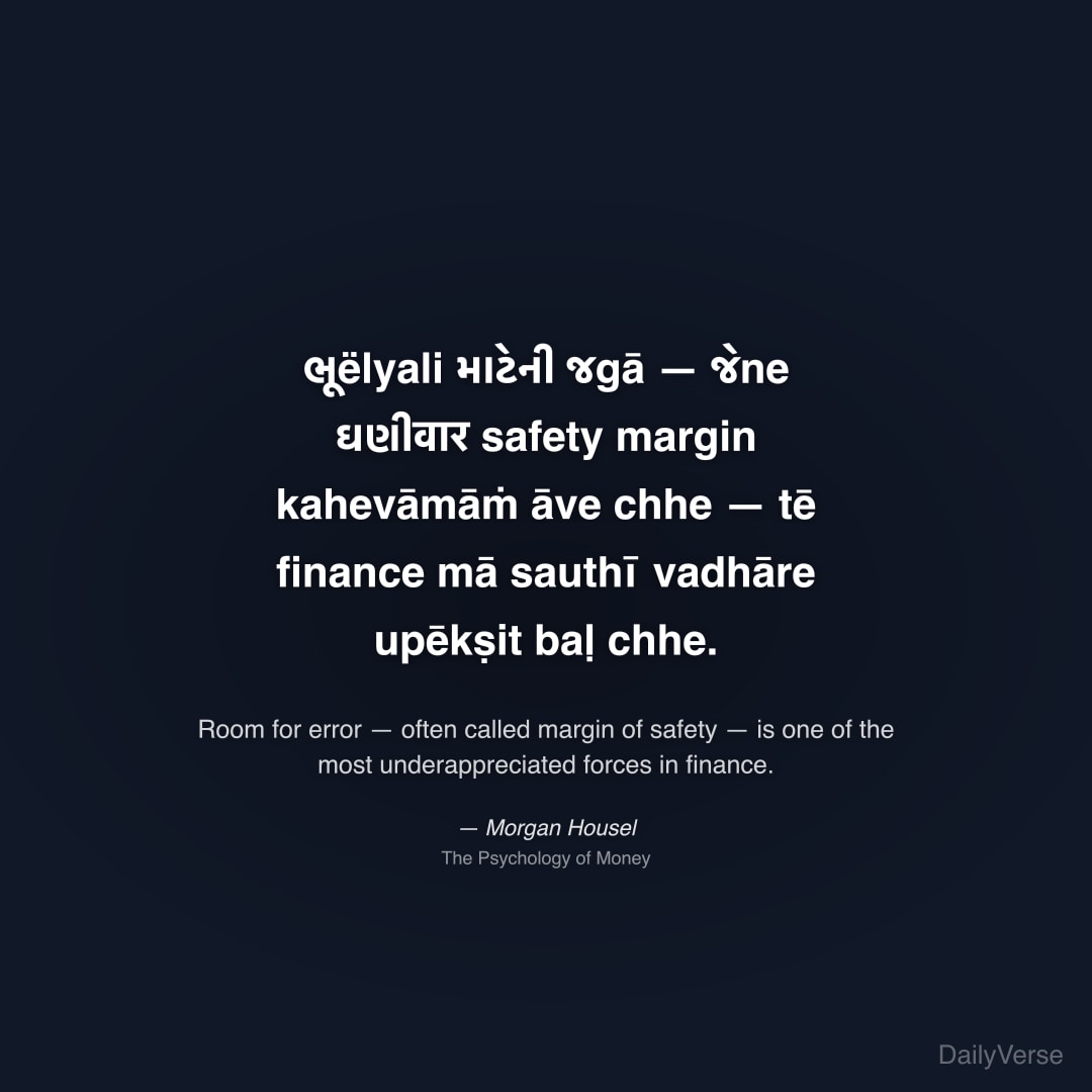 "ભૂëlyali માટેની જgā — જેne ઘણીवार safety margin  kahevāmāṁ āve chhe — tē finance mā sauthī vadhāre upēkṣit baḷ chhe." — Morgan Housel