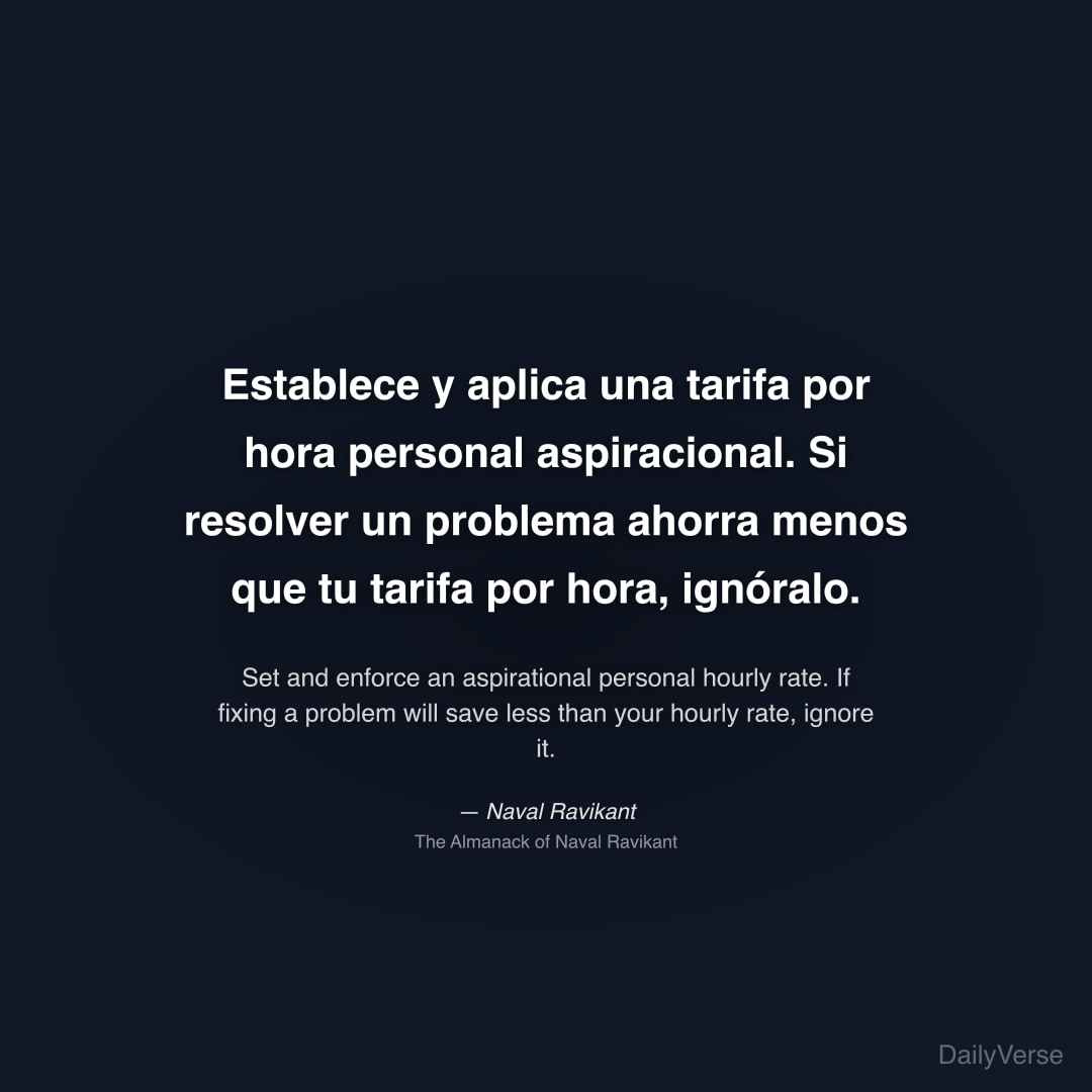 "Establece y aplica una tarifa por hora personal aspiracional. Si resolver un problema ahorra menos que tu tarifa por hora, ignóralo." — Naval Ravikant