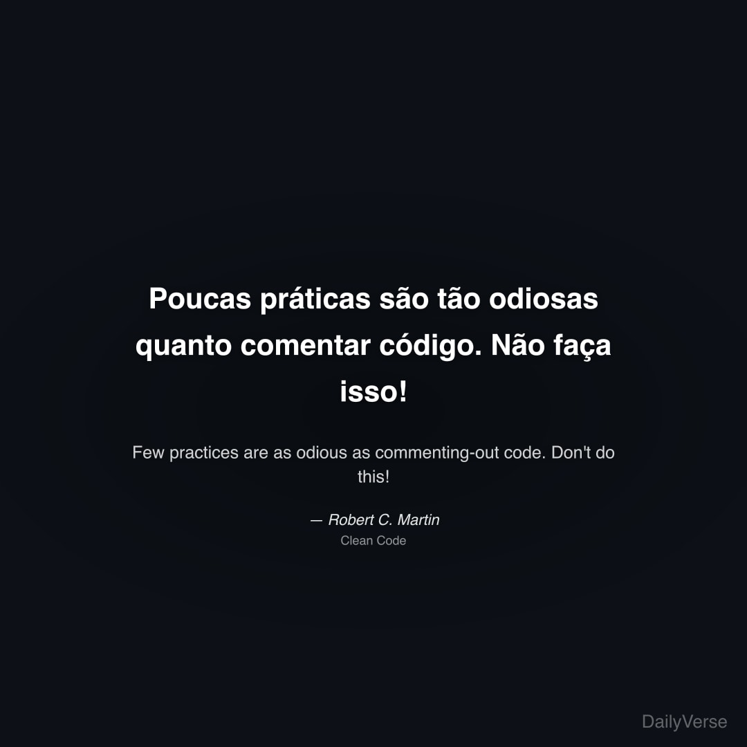 "Poucas práticas são tão odiosas quanto comentar código. Não faça isso!" — Robert C. Martin