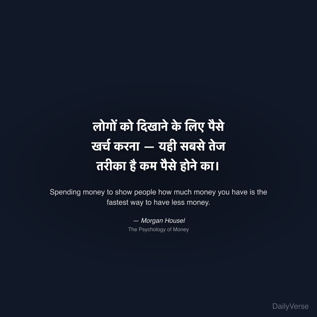 "लोगों को दिखाने के लिए पैसे खर्च करना — यही सबसे तेज तरीका है कम पैसे होने का।" — Morgan Housel