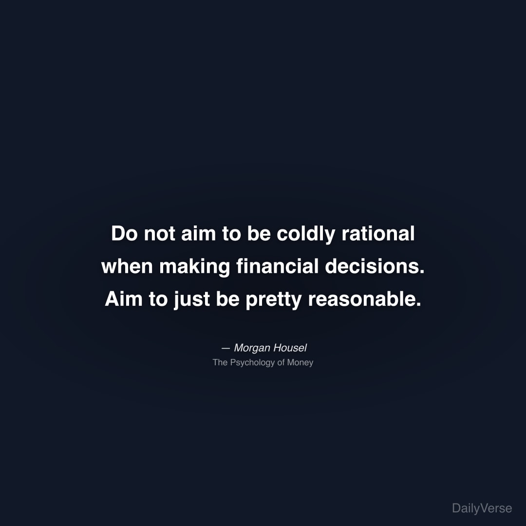 "Do not aim to be coldly rational when making financial decisions. Aim to just be pretty reasonable." — Morgan Housel