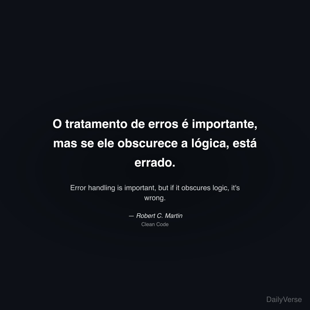 "O tratamento de erros é importante, mas se ele obscurece a lógica, está errado." — Robert C. Martin