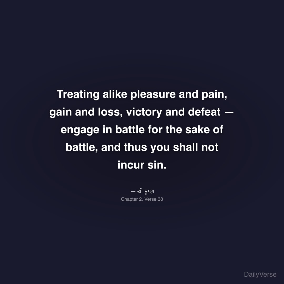 "Treating alike pleasure and pain, gain and loss, victory and defeat — engage in battle for the sake of battle, and thus you shall not incur sin." — શ્રી કૃષ્ણ