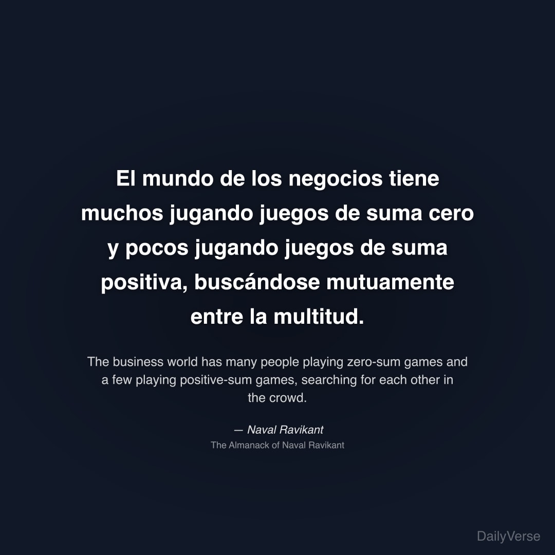 "El mundo de los negocios tiene muchos jugando juegos de suma cero y pocos jugando juegos de suma positiva, buscándose mutuamente entre la multitud." — Naval Ravikant