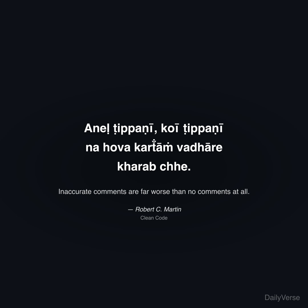 "Aneḷ ṭippaṇī, koī ṭippaṇī na hova kart̐āṁ vadhāre kharab chhe." — Robert C. Martin