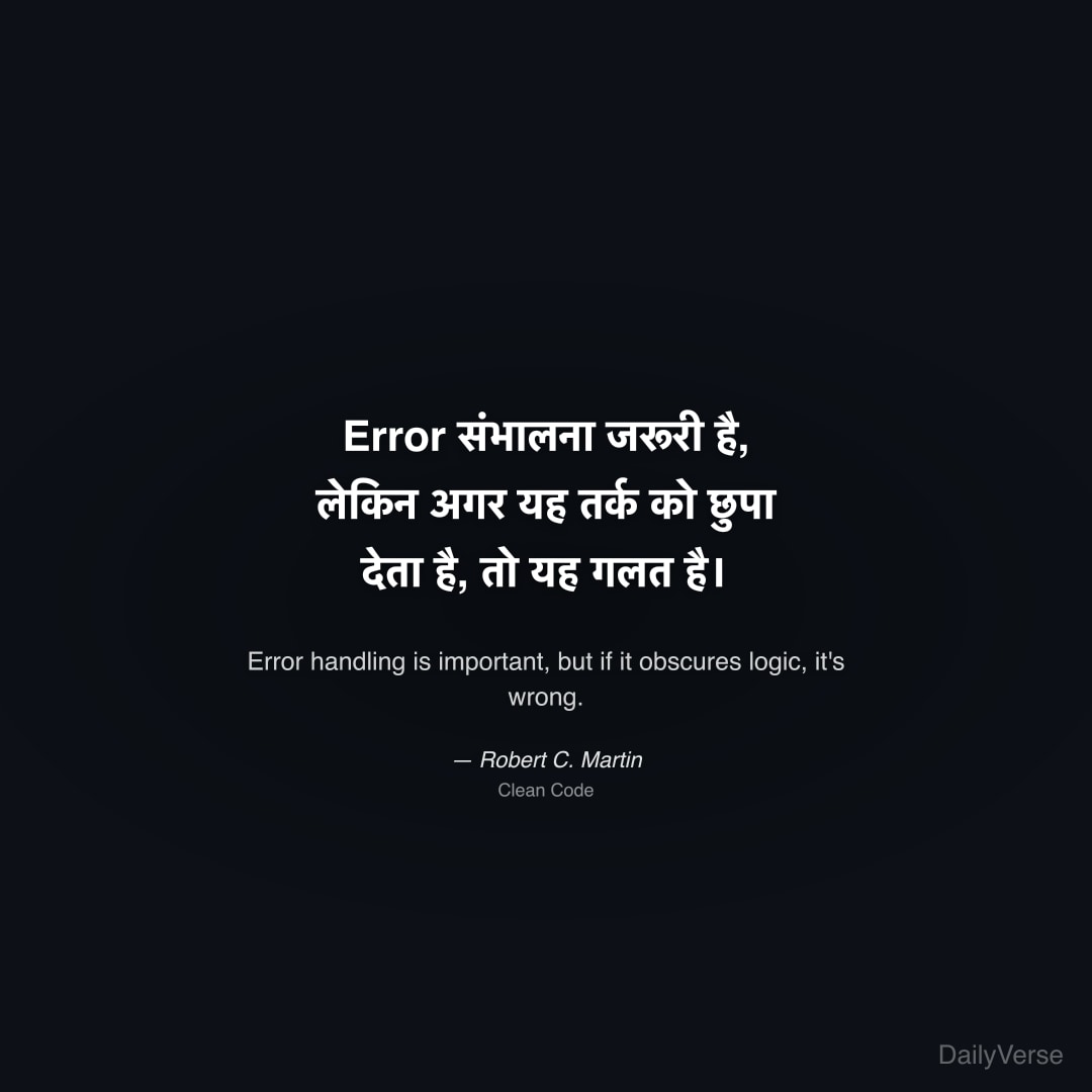 "Error संभालना जरूरी है, लेकिन अगर यह तर्क को छुपा देता है, तो यह गलत है।" — Robert C. Martin
