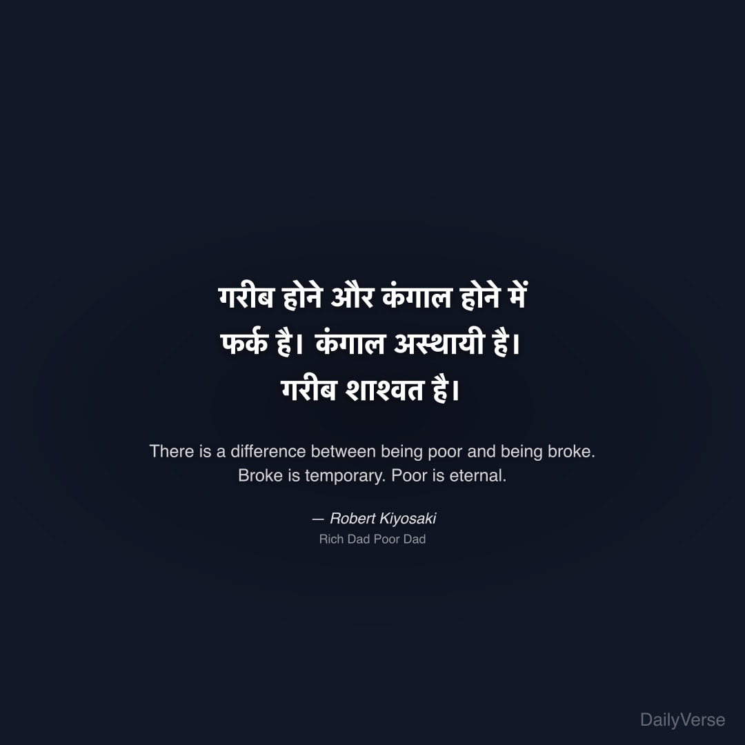 "गरीब होने और कंगाल होने में फर्क है। कंगाल अस्थायी है। गरीब शाश्वत है।" — Robert Kiyosaki