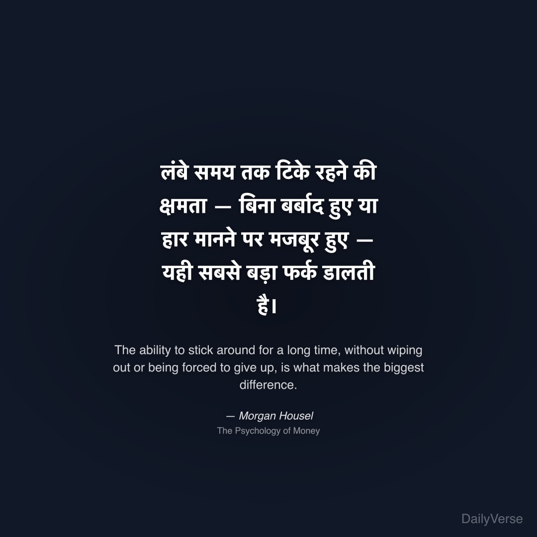"लंबे समय तक टिके रहने की क्षमता — बिना बर्बाद हुए या हार मानने पर मजबूर हुए — यही सबसे बड़ा फर्क डालती है।" — Morgan Housel