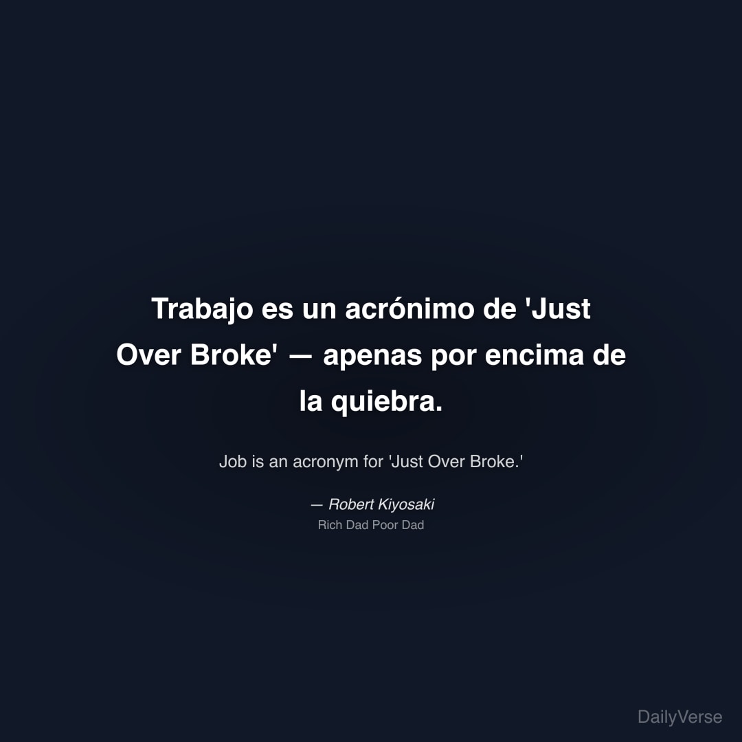 "Trabajo es un acrónimo de 'Just Over Broke' — apenas por encima de la quiebra." — Robert Kiyosaki