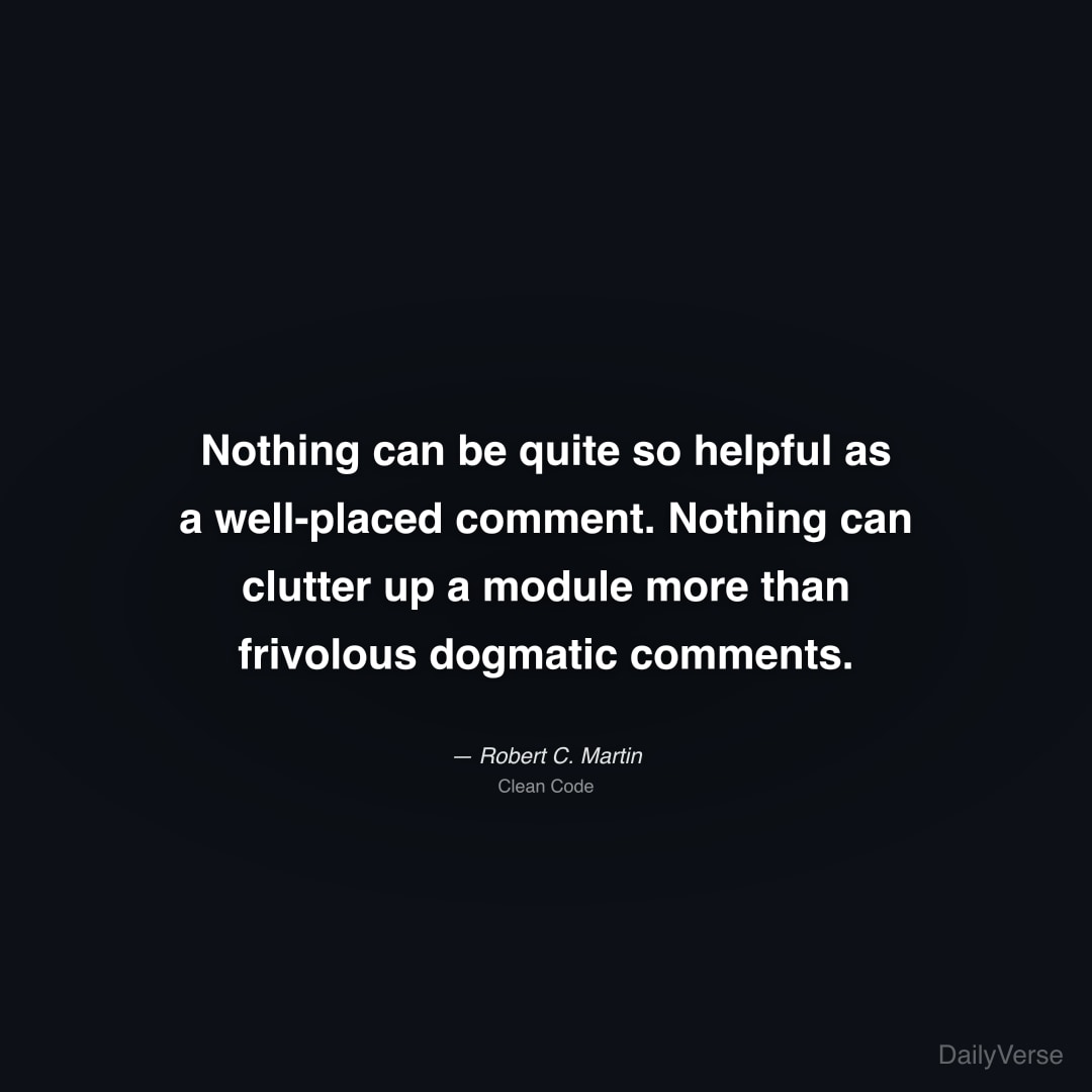 "Nothing can be quite so helpful as a well-placed comment. Nothing can clutter up a module more than frivolous dogmatic comments." — Robert C. Martin