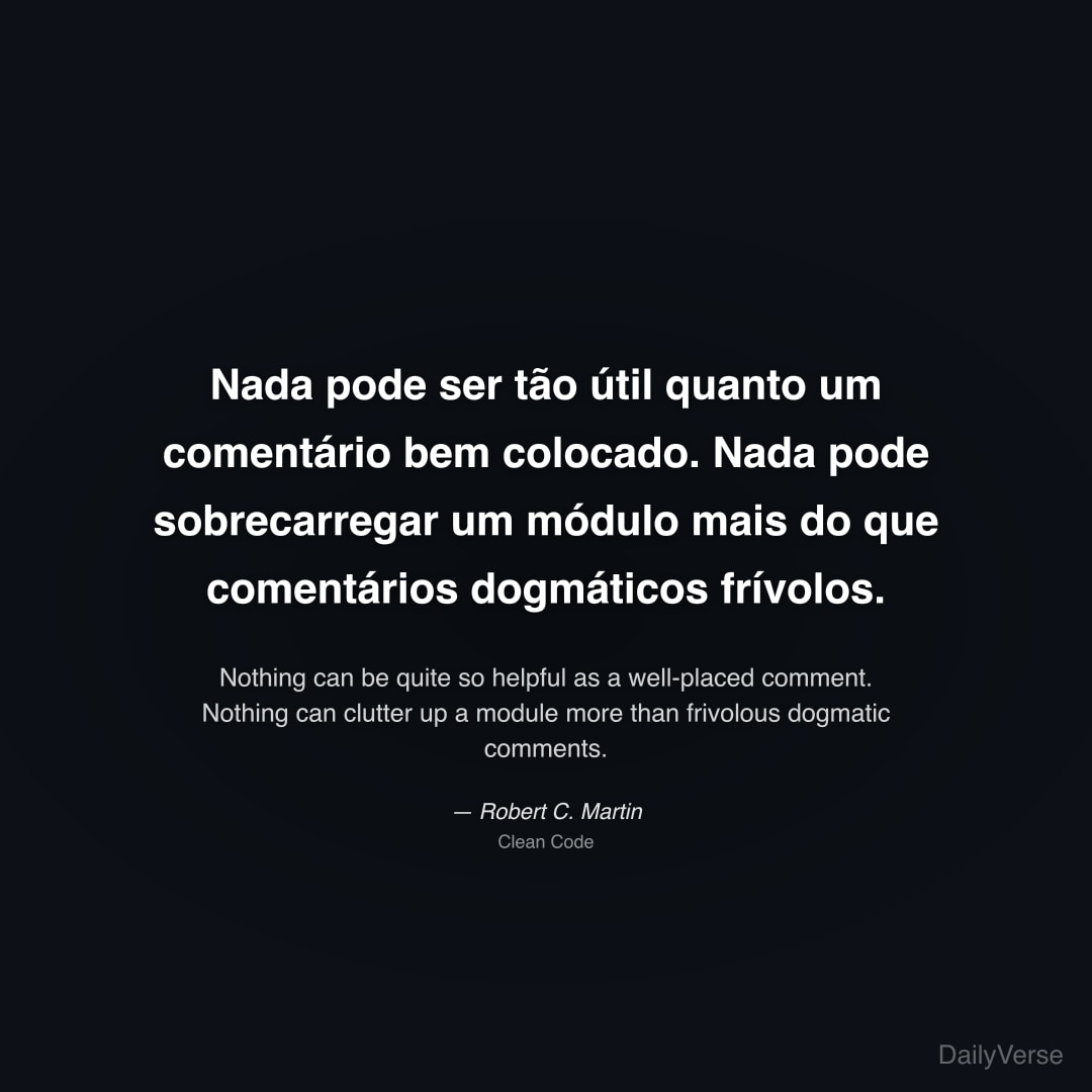 "Nada pode ser tão útil quanto um comentário bem colocado. Nada pode sobrecarregar um módulo mais do que comentários dogmáticos frívolos." — Robert C. Martin