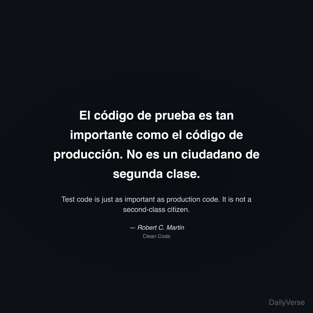 "El código de prueba es tan importante como el código de producción. No es un ciudadano de segunda clase." — Robert C. Martin