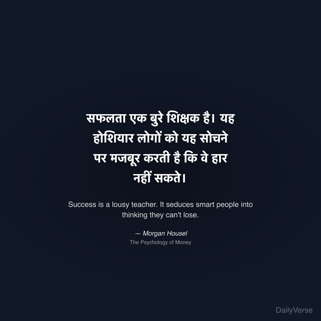 "सफलता एक बुरे शिक्षक है। यह होशियार लोगों को यह सोचने पर मजबूर करती है कि वे हार नहीं सकते।" — Morgan Housel