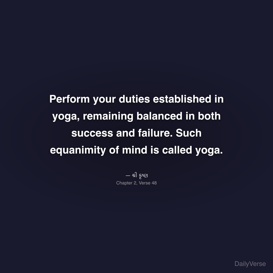 "Perform your duties established in yoga, remaining balanced in both success and failure. Such equanimity of mind is called yoga." — શ્રી કૃષ્ણ
