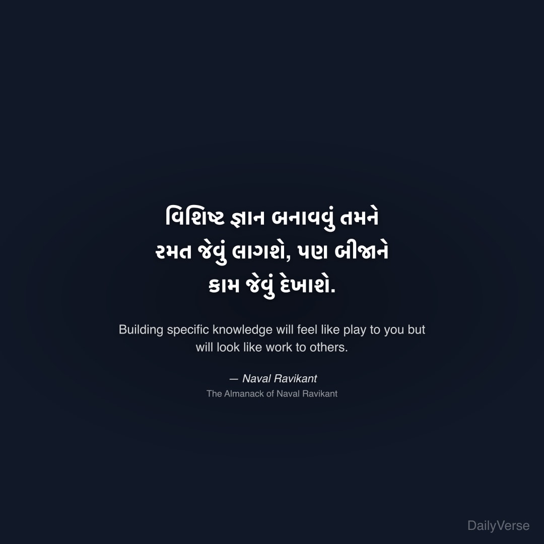 "વિશિષ્ટ જ્ઞાન બનાવવું તમને રમત જેવું લાગશે, પણ બીજાને કામ જેવું દેખાશે." — Naval Ravikant