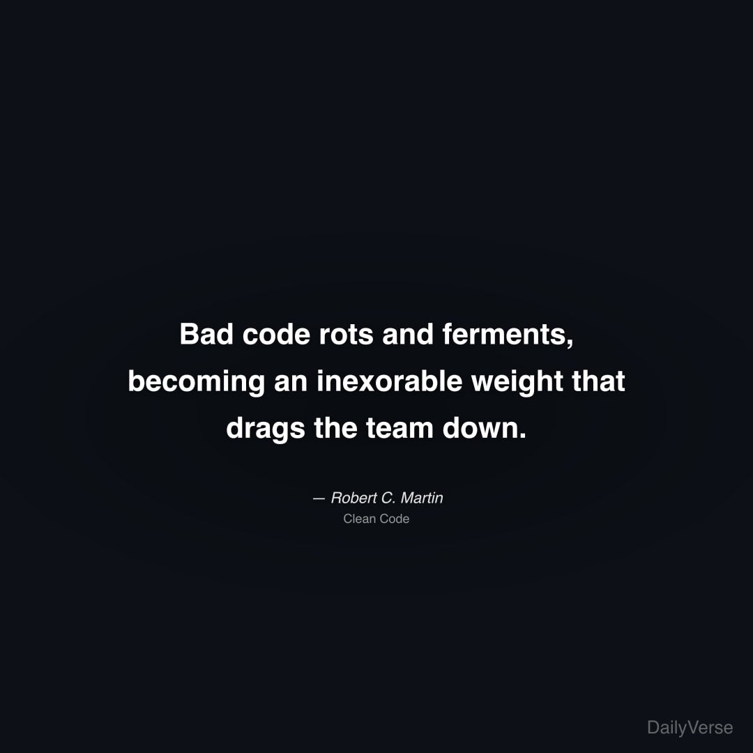 "Bad code rots and ferments, becoming an inexorable weight that drags the team down." — Robert C. Martin