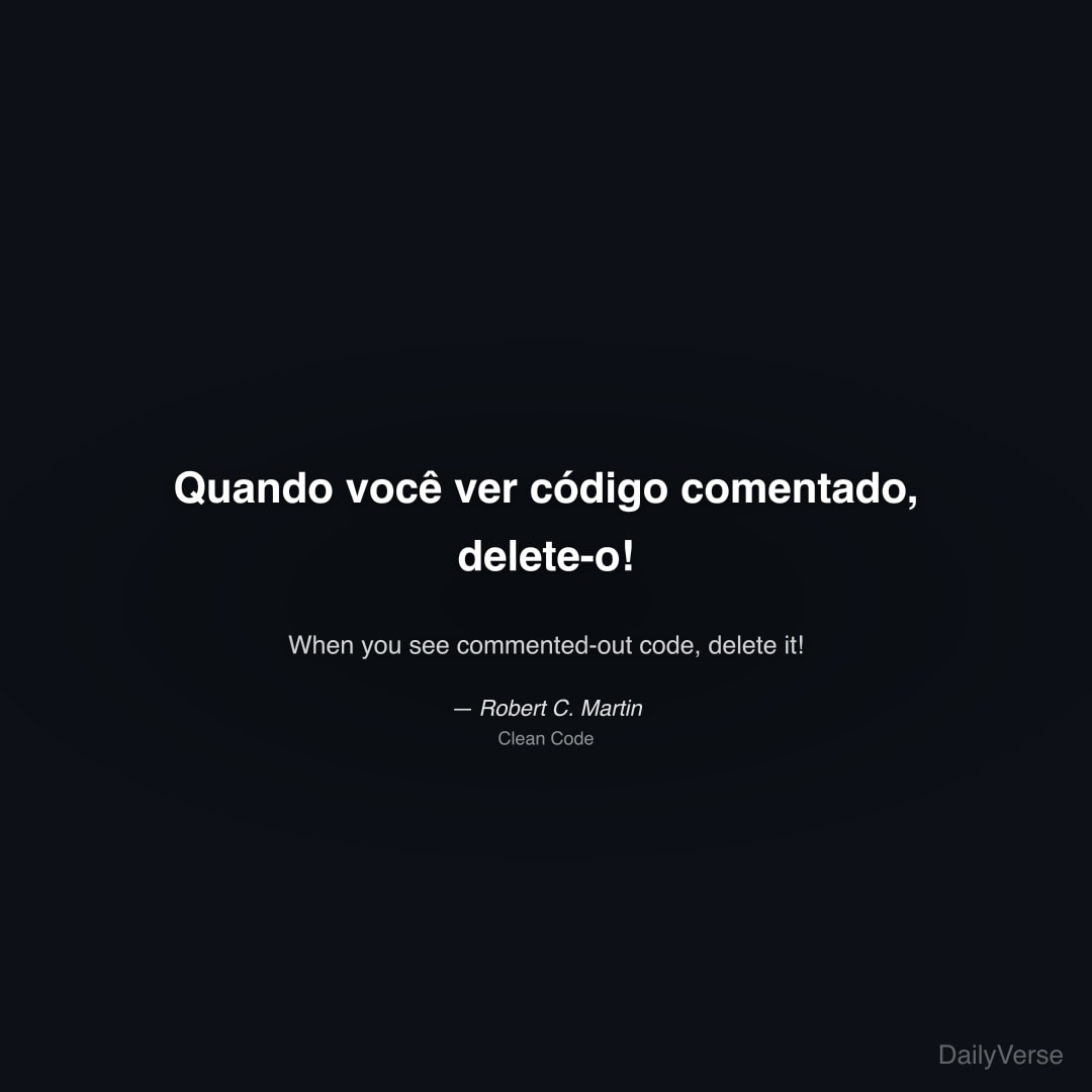 "Quando você ver código comentado, delete-o!" — Robert C. Martin