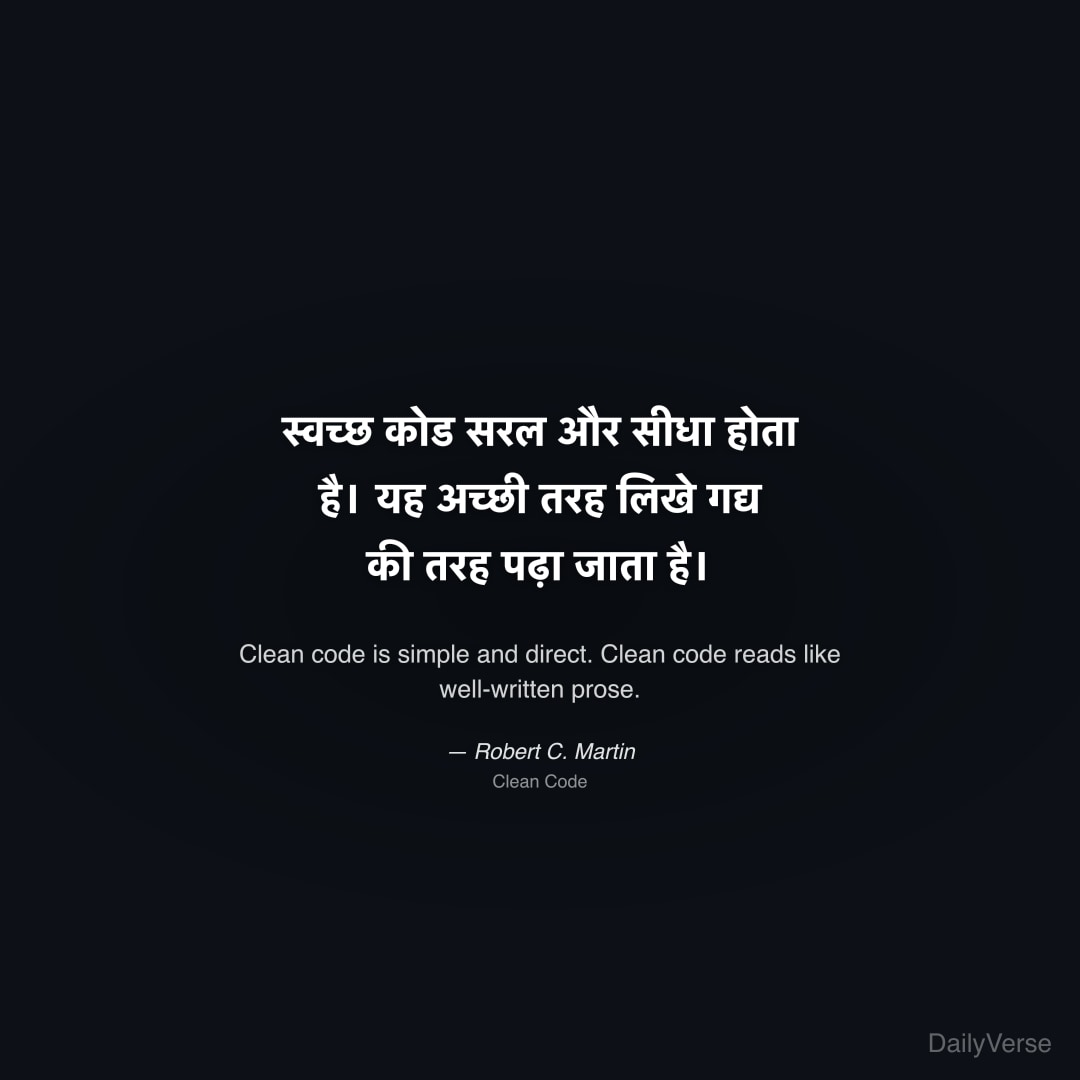 "स्वच्छ कोड सरल और सीधा होता है। यह अच्छी तरह लिखे गद्य की तरह पढ़ा जाता है।" — Robert C. Martin