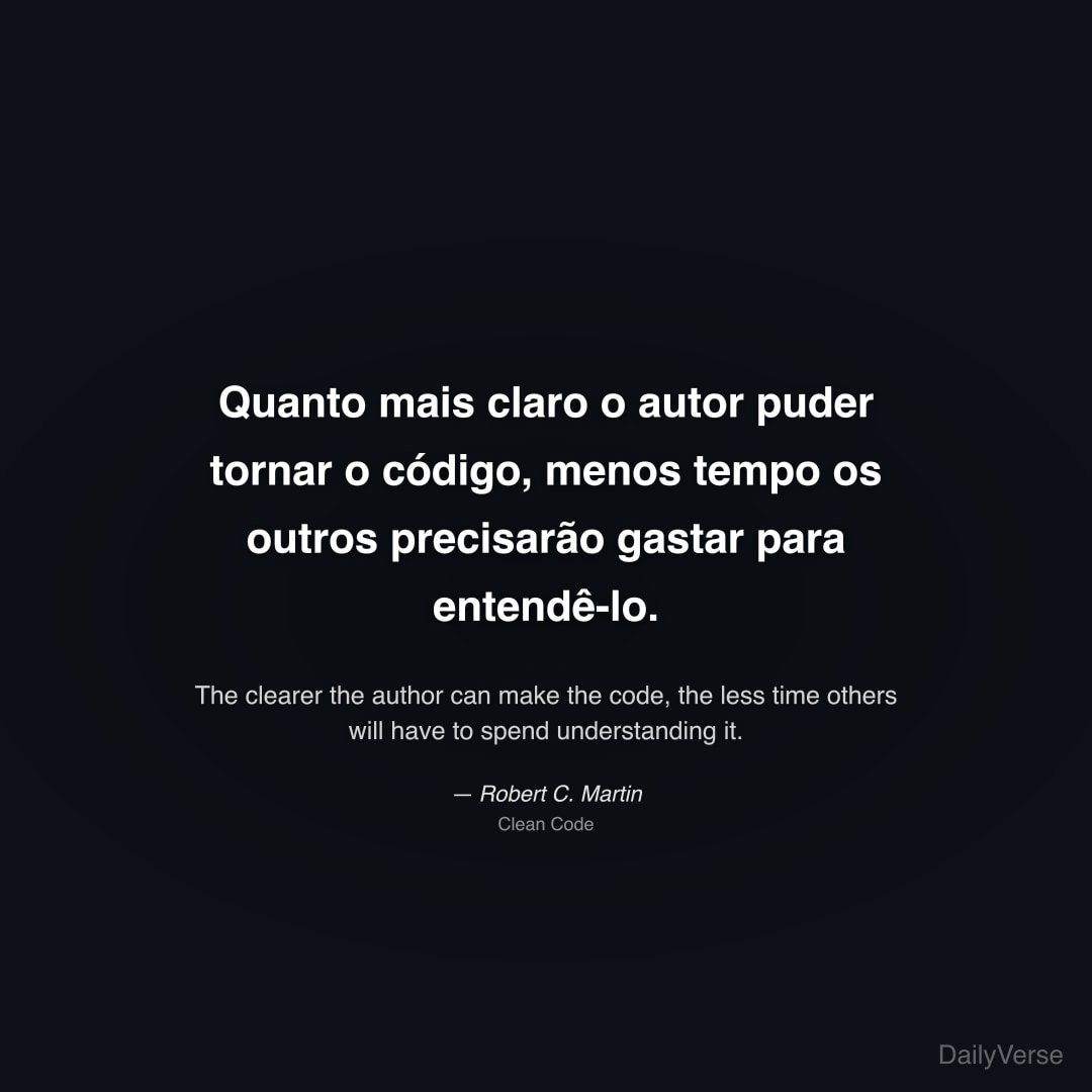"Quanto mais claro o autor puder tornar o código, menos tempo os outros precisarão gastar para entendê-lo." — Robert C. Martin