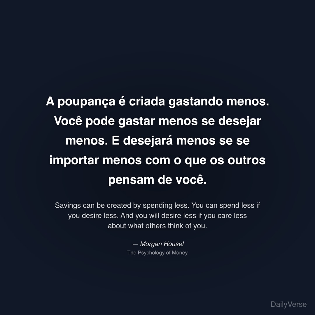 "A poupança é criada gastando menos. Você pode gastar menos se desejar menos. E desejará menos se se importar menos com o que os outros pensam de você." — Morgan Housel