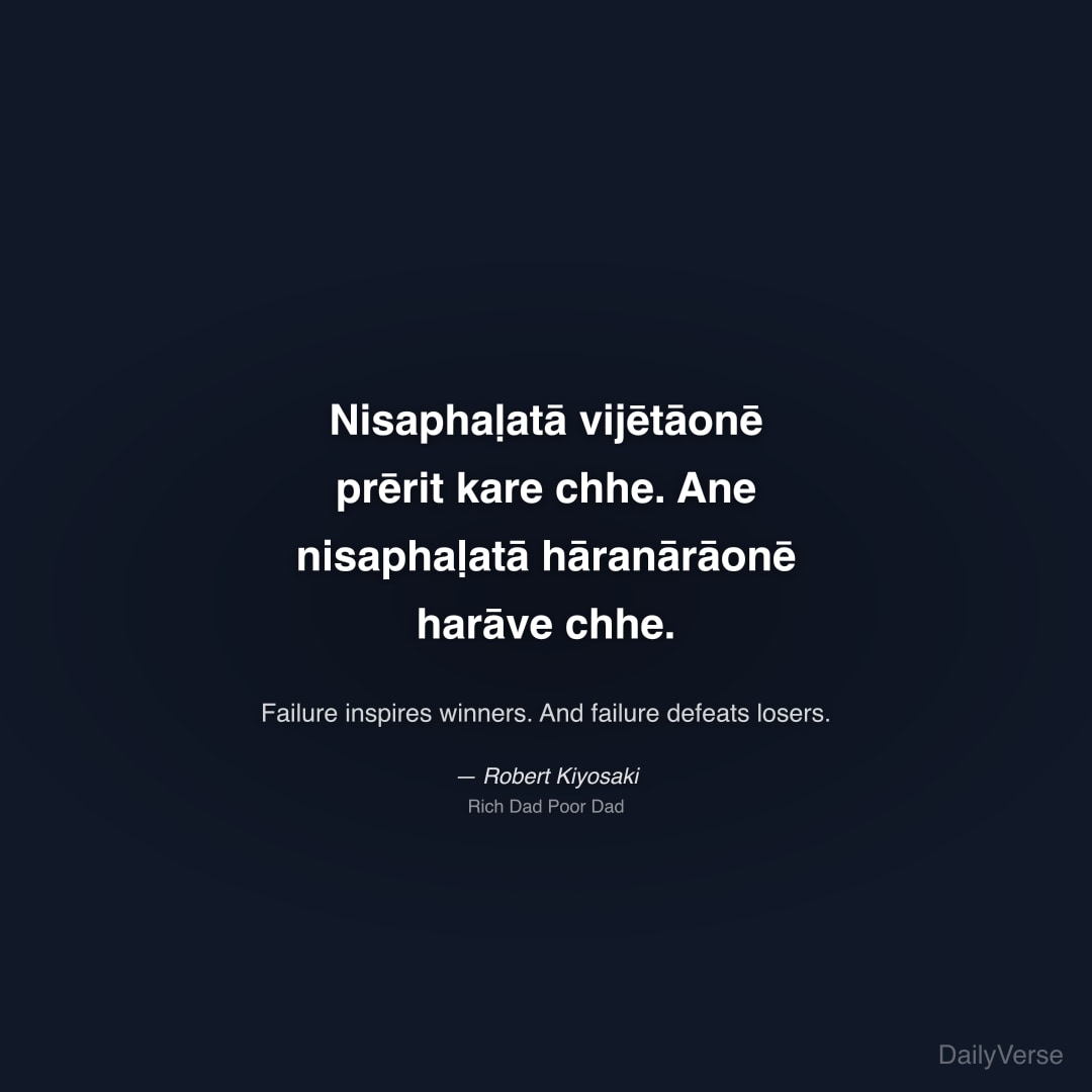 "Nisaphaḷatā vijētāonē prērit kare chhe. Ane nisaphaḷatā hāranārāonē harāve chhe." — Robert Kiyosaki