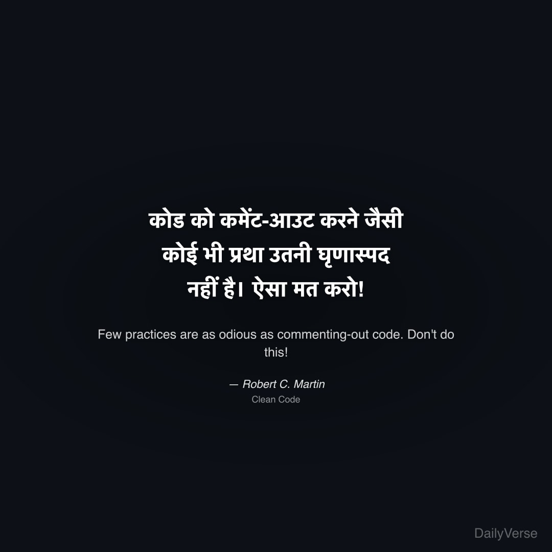 "कोड को कमेंट-आउट करने जैसी कोई भी प्रथा उतनी घृणास्पद नहीं है। ऐसा मत करो!" — Robert C. Martin