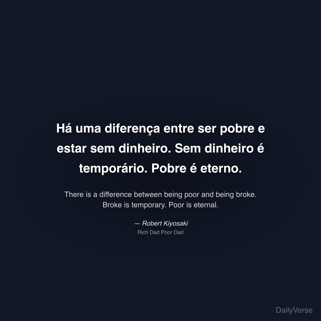 "Há uma diferença entre ser pobre e estar sem dinheiro. Sem dinheiro é temporário. Pobre é eterno." — Robert Kiyosaki