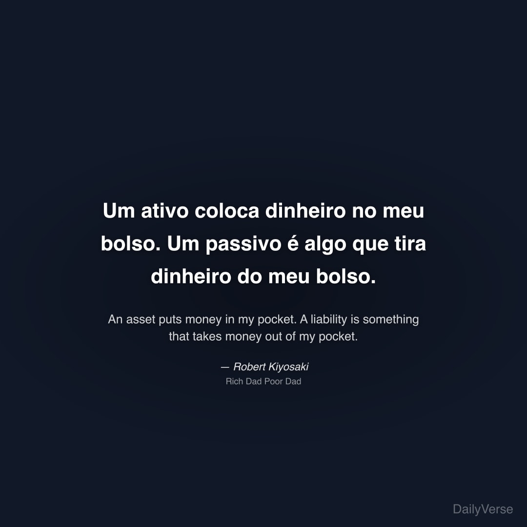 "Um ativo coloca dinheiro no meu bolso. Um passivo é algo que tira dinheiro do meu bolso." — Robert Kiyosaki