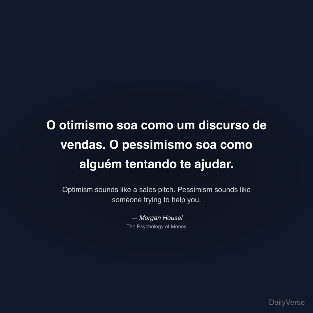 "O otimismo soa como um discurso de vendas. O pessimismo soa como alguém tentando te ajudar." — Morgan Housel