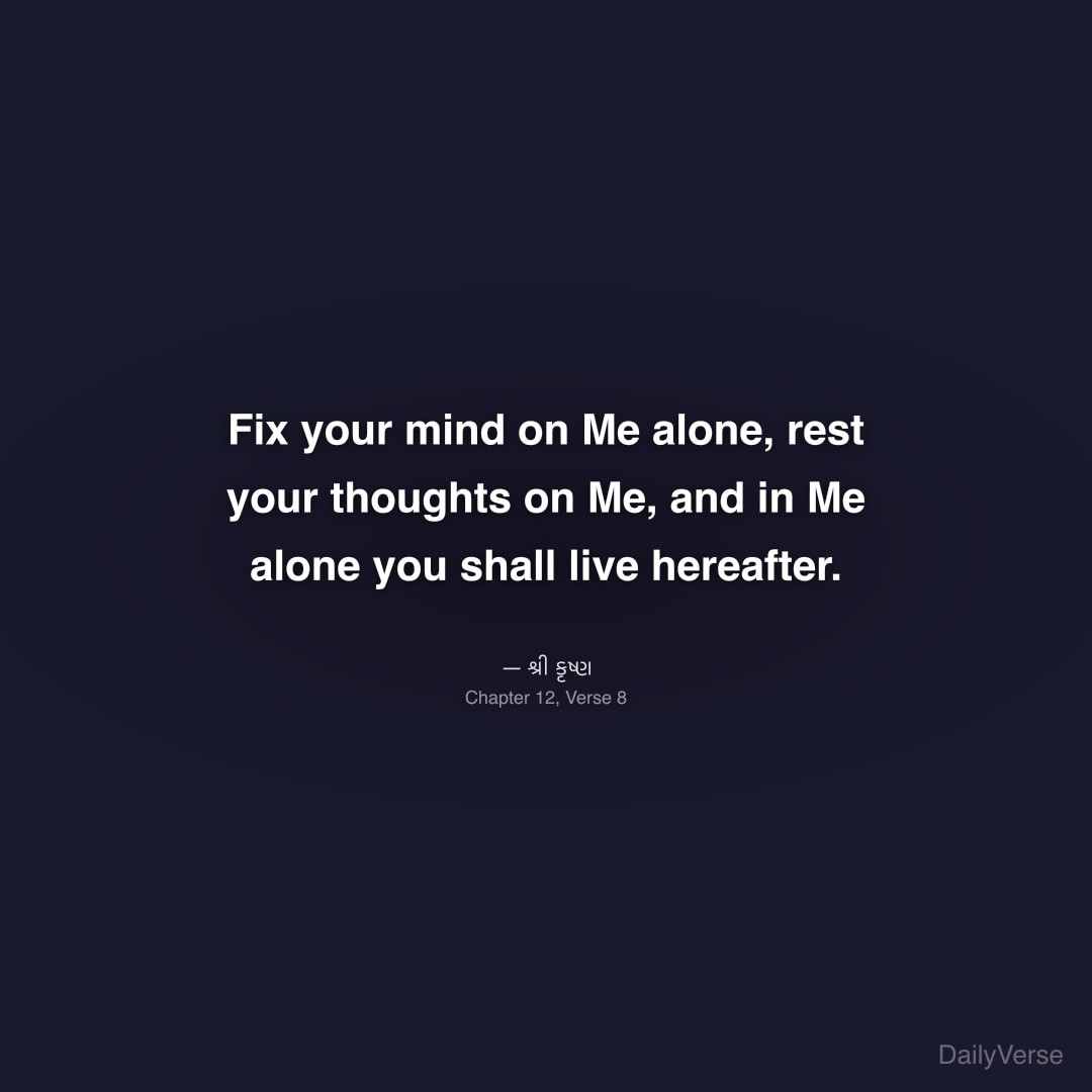 "Fix your mind on Me alone, rest your thoughts on Me, and in Me alone you shall live hereafter." — શ્રી કૃષ્ણ