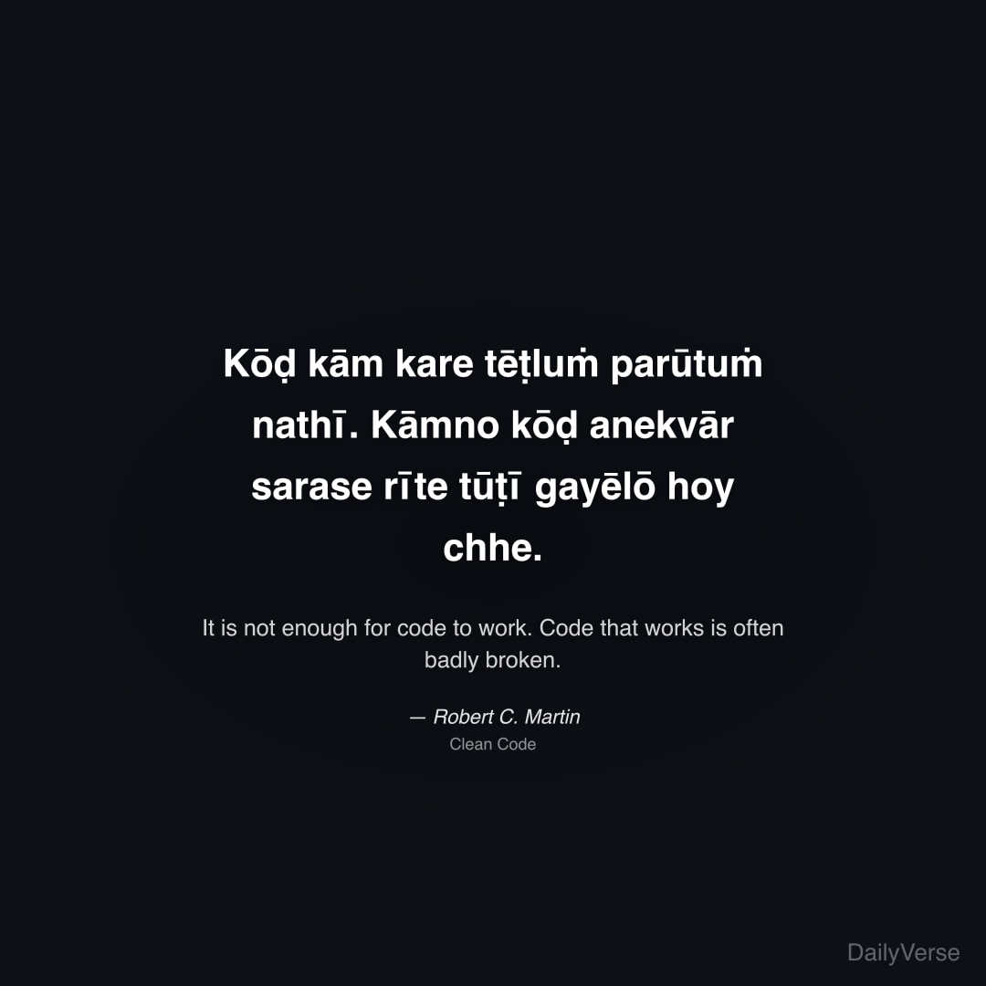 "Kōḍ kām kare tēṭluṁ parūtuṁ nathī. Kāmno kōḍ anekvār sarase rīte tūṭī gayēlō hoy chhe." — Robert C. Martin