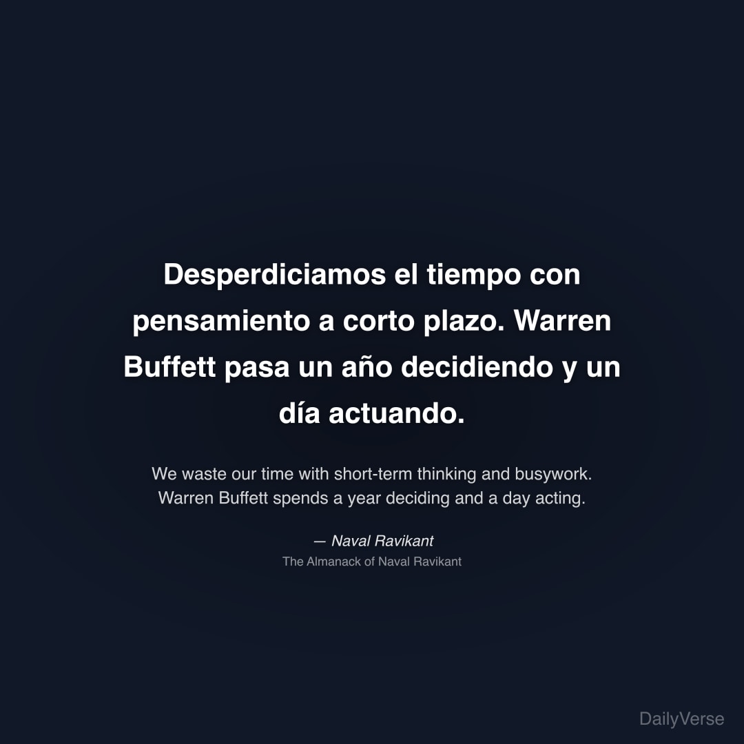 "Desperdiciamos el tiempo con pensamiento a corto plazo. Warren Buffett pasa un año decidiendo y un día actuando." — Naval Ravikant