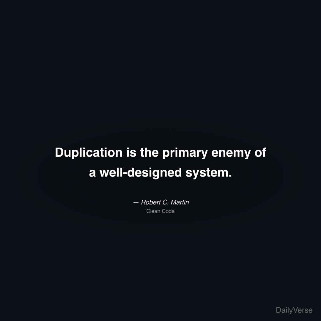 "Duplication is the primary enemy of a well-designed system." — Robert C. Martin
