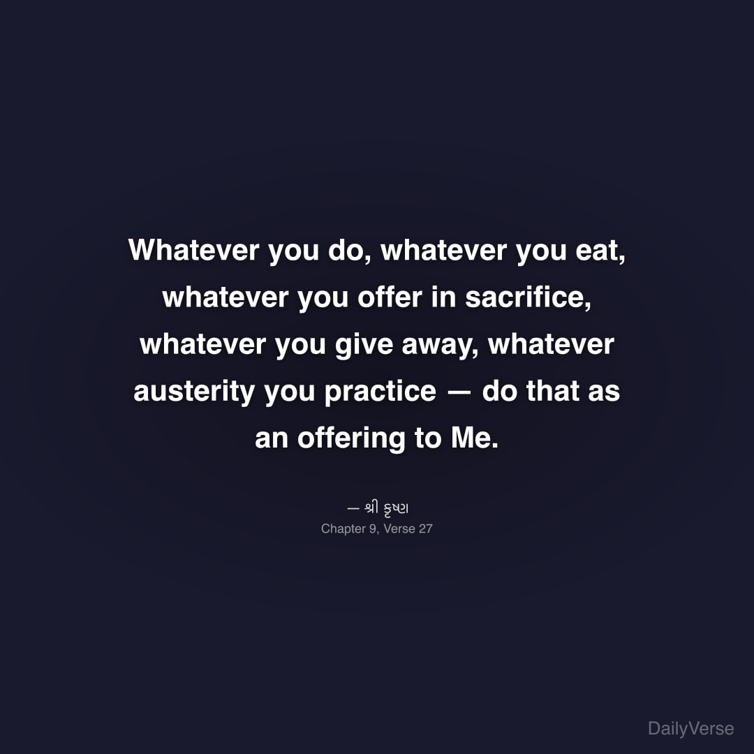 "Whatever you do, whatever you eat, whatever you offer in sacrifice, whatever you give away, whatever austerity you practice — do that as an offering to Me." — શ્રી કૃષ્ણ