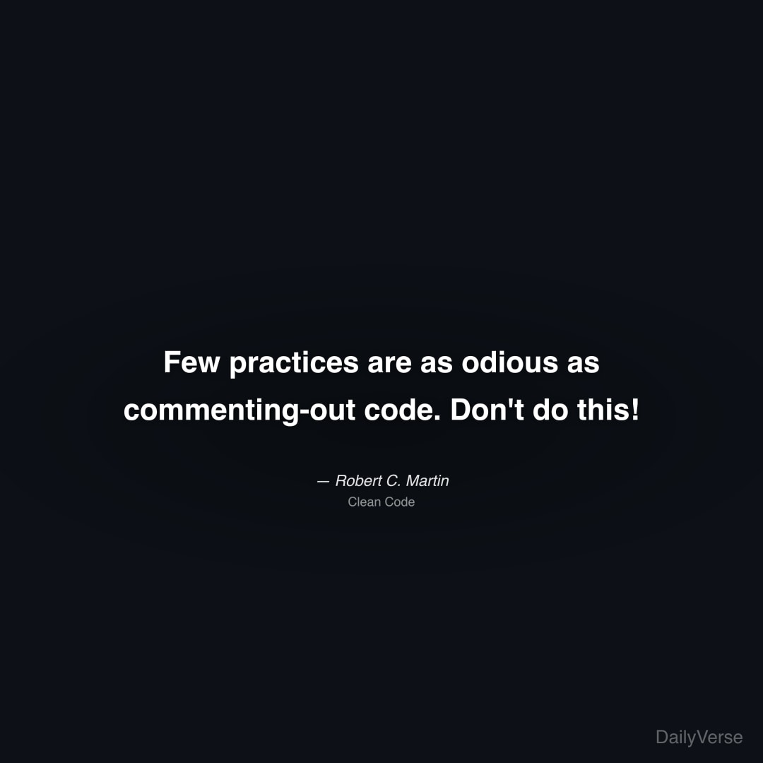 "Few practices are as odious as commenting-out code. Don't do this!" — Robert C. Martin