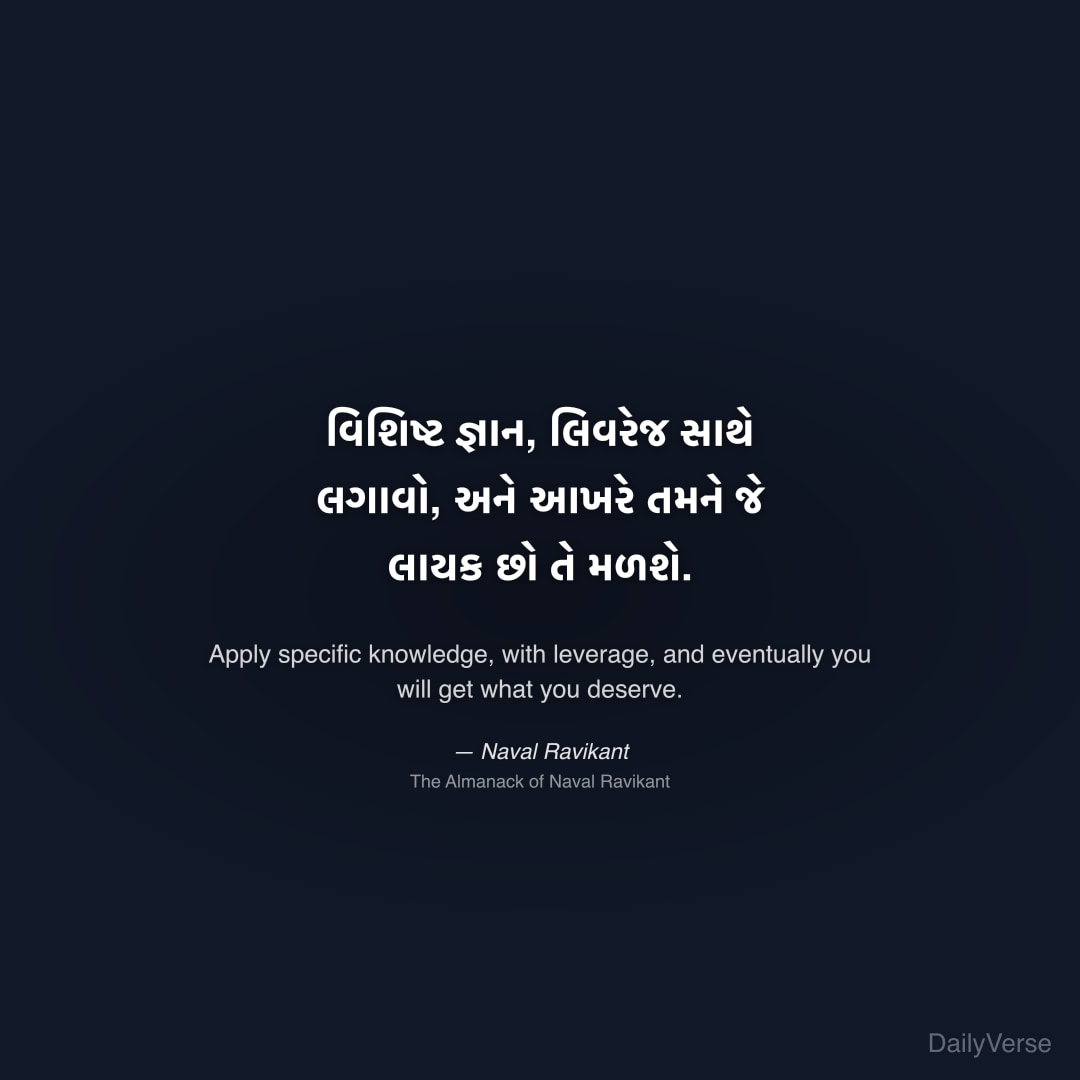 "વિશિષ્ટ જ્ઞાન, લિવરેજ સાથે લગાવો, અને આખરે તમને જે લાયક છો તે મળશે." — Naval Ravikant